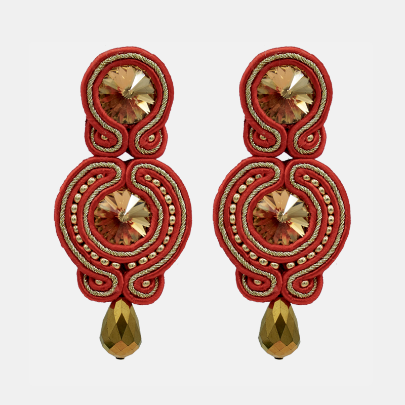 Wunderschöne Soutache Ohrringe mit der Hand genäht. Durch die Soutache Technik sind die Ohrringe unfassbar leicht und daher sehr angenehm zu tragen. Der absolute Hingucker.